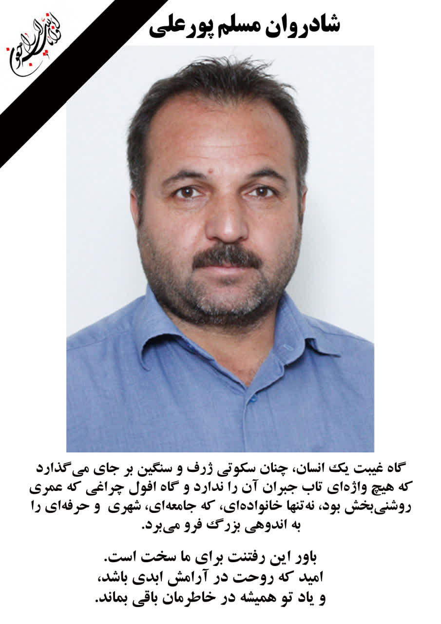 درگذشت همکار ارجمندمان آقای مسلم پورعلی