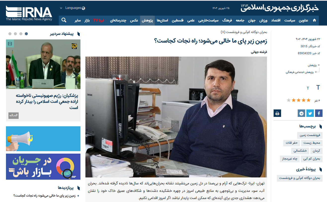 دکتر باقر قرمزچشمه، مدیر گروه هیدرولوژی پژوهشکده حفاظت خاک و آبخیزداری در گفتوگو با ایرنا: زمین زیر پای ما خالی میشود؛ راه نجات کجاست؟
