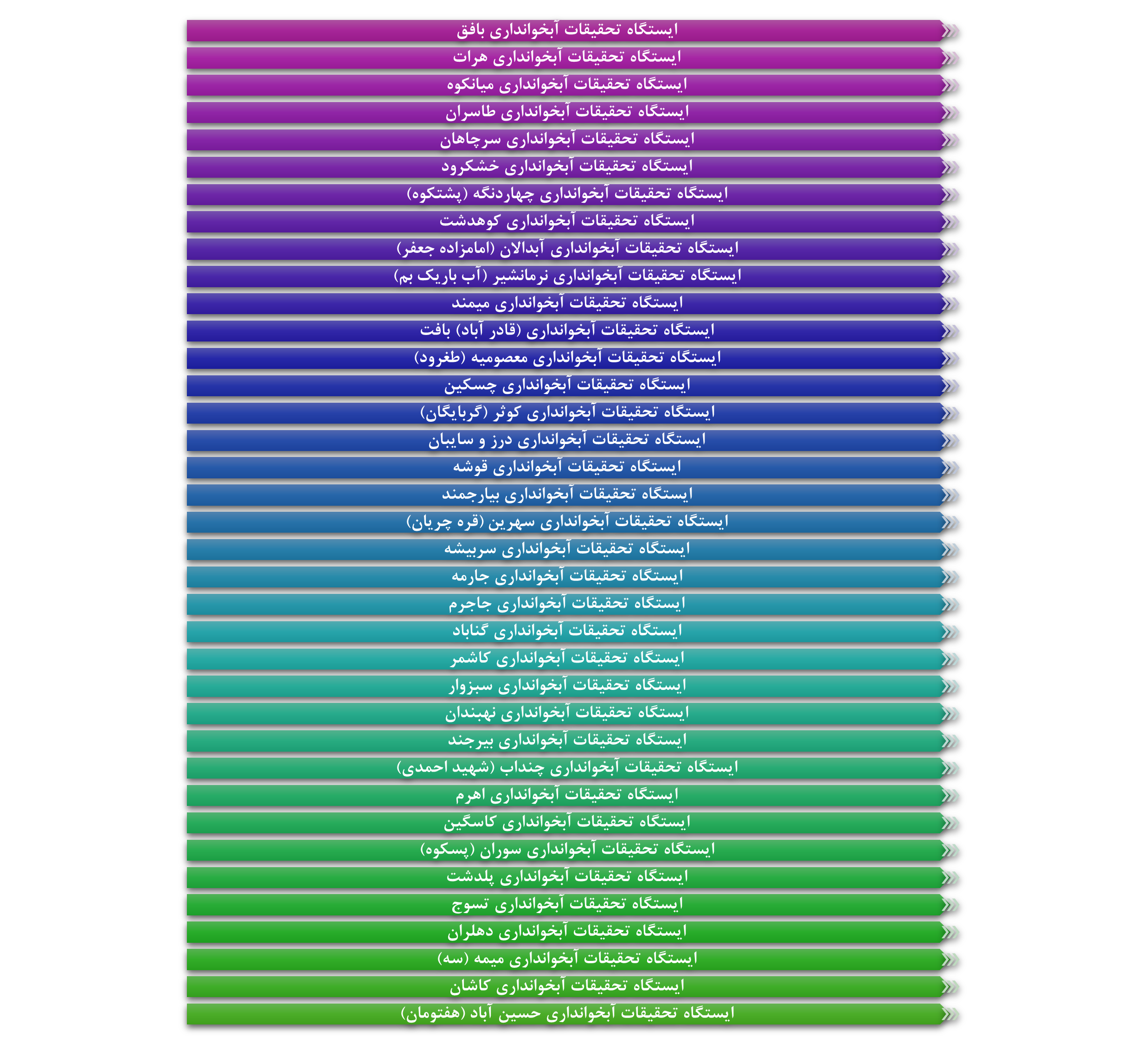 مشخصات ایستگاههای آبخوانداری تعداد بازدید:۳۸ ایستگاههای تحقیقات آبخوانداری بهعنوان مراکز علمی و عملیاتی، نقش محوری در مدیریت منابع آبی کشور ایفا میکنند.